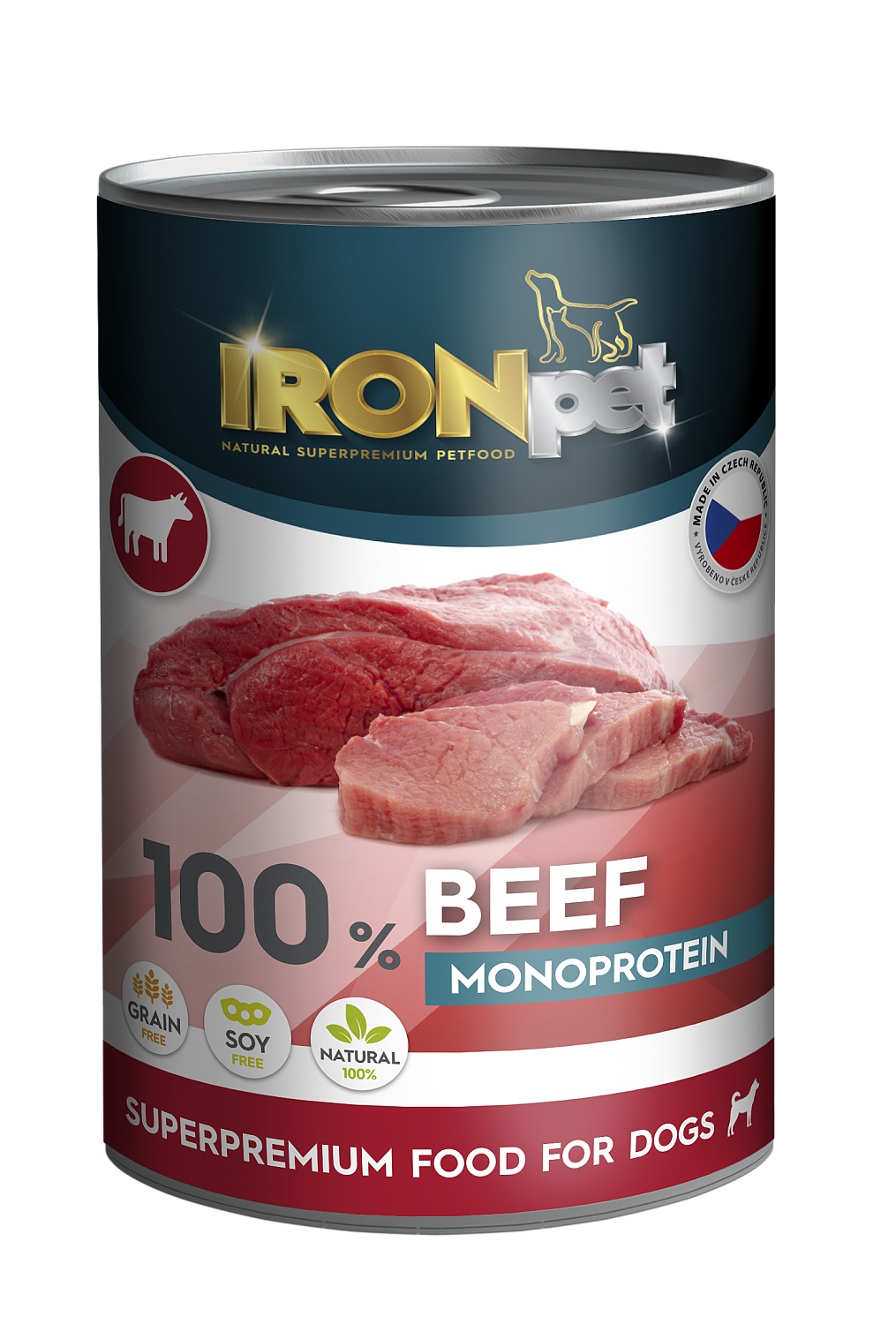 IRONpet BEEF 400g to 100% Monoprotein to jest Kompletna karma dla psów: