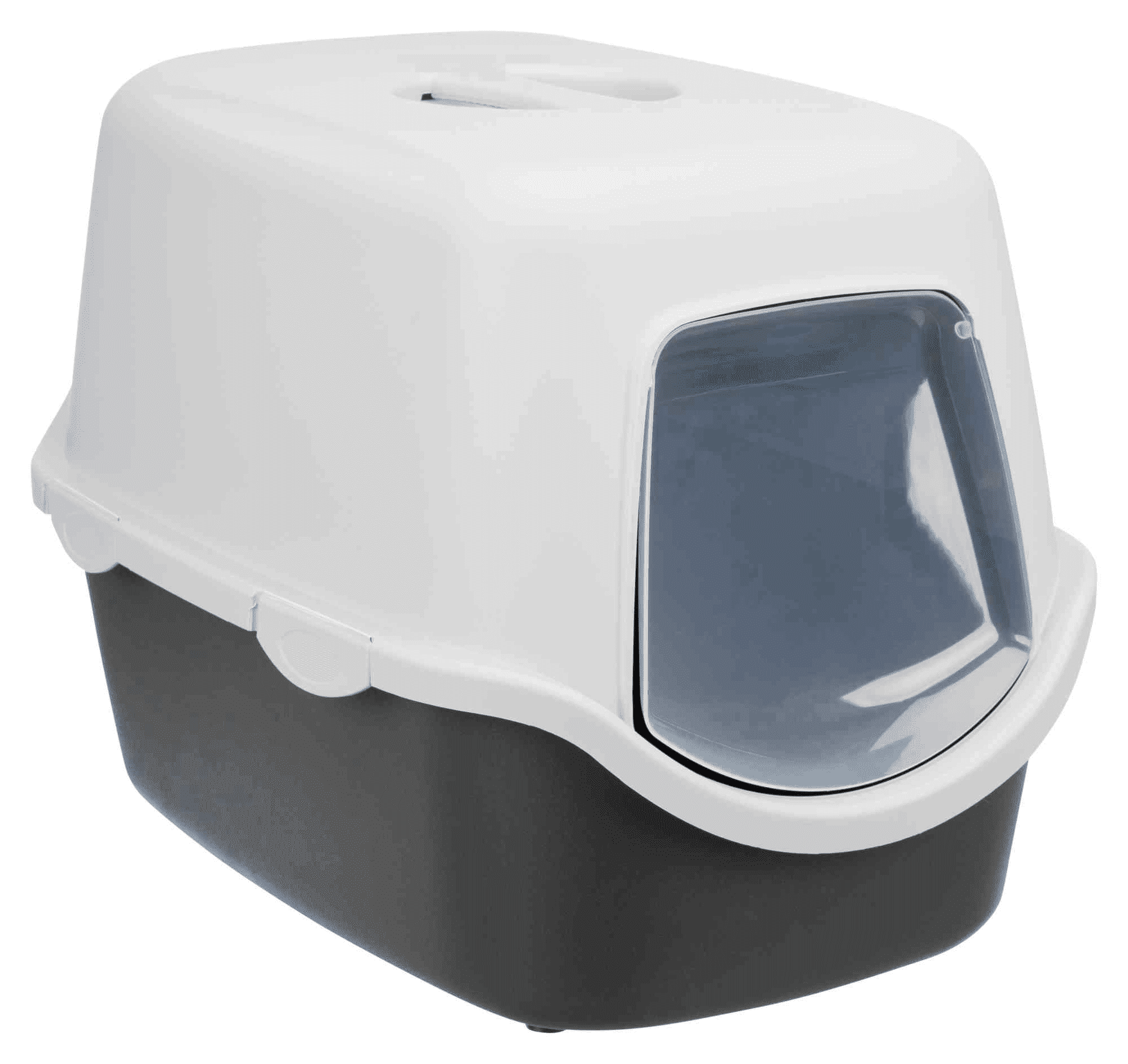 Produkt posiada odpowiednio wyprofilowane krawędzie, które zapobiegają wysypywaniu się żwirku na zewnątrz. Wahadłowe drzwiczki ograniczają rozprzestrzenianie się nieprzyjemnych zapachów z kuwety.