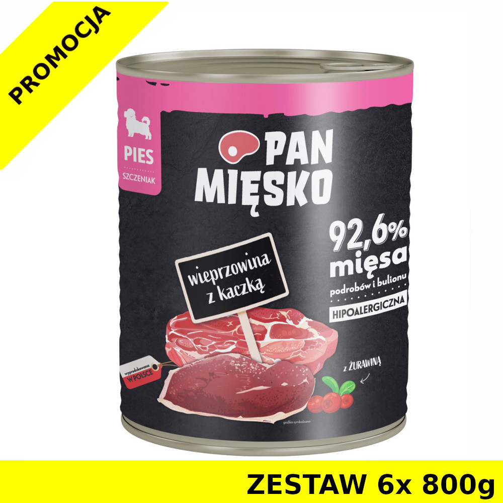 PAN MIĘSKO WIEPRZOWINA Z KACZKĄ - Karma pełnoporcjowa mokra dla szczeniąt