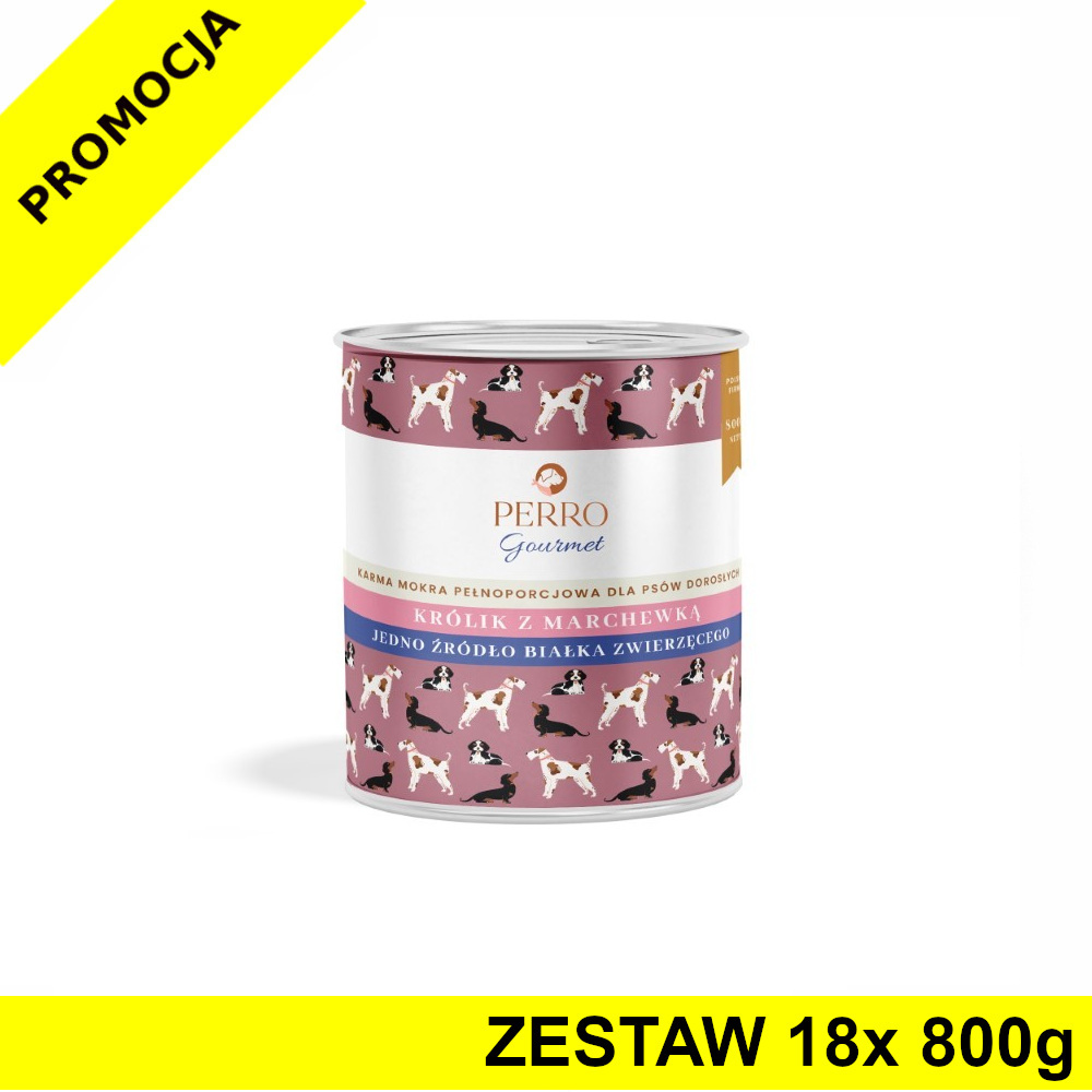 Karma mokra PERRO Królik z marchewką jest bezzbożową, monobiałkową formułą dla psów dorosłych wszystkich ras.