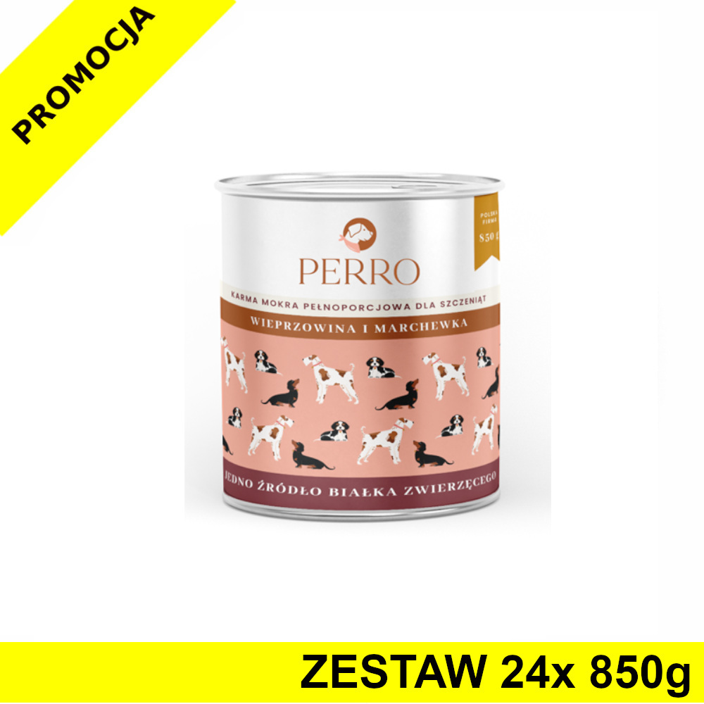 PERRO WIEPRZOWINA Z MARCHEWKĄ DLA SZCZENIĄT ZESTAW 24x 850G