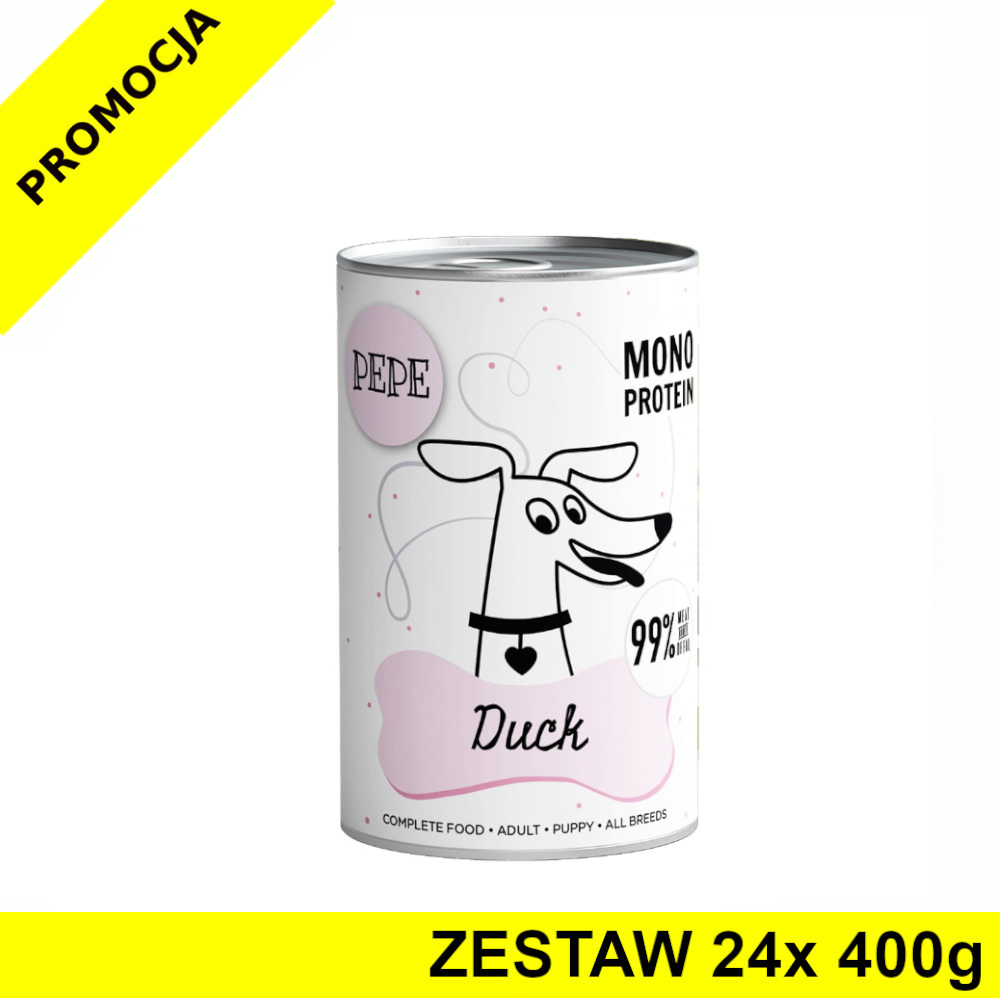 Karma Mokra Paka Zwierzaka - PEPE MONO PROTEIN Duck- kaczka - ZESTAW 24x 400g