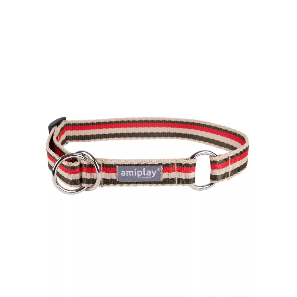 🐕 Wybierz połączenie funkcjonalności i stylu – Amiplay Obroża Półzaciskowa Popular w czerwono-oliwkowych paskach, rozmiar M!
