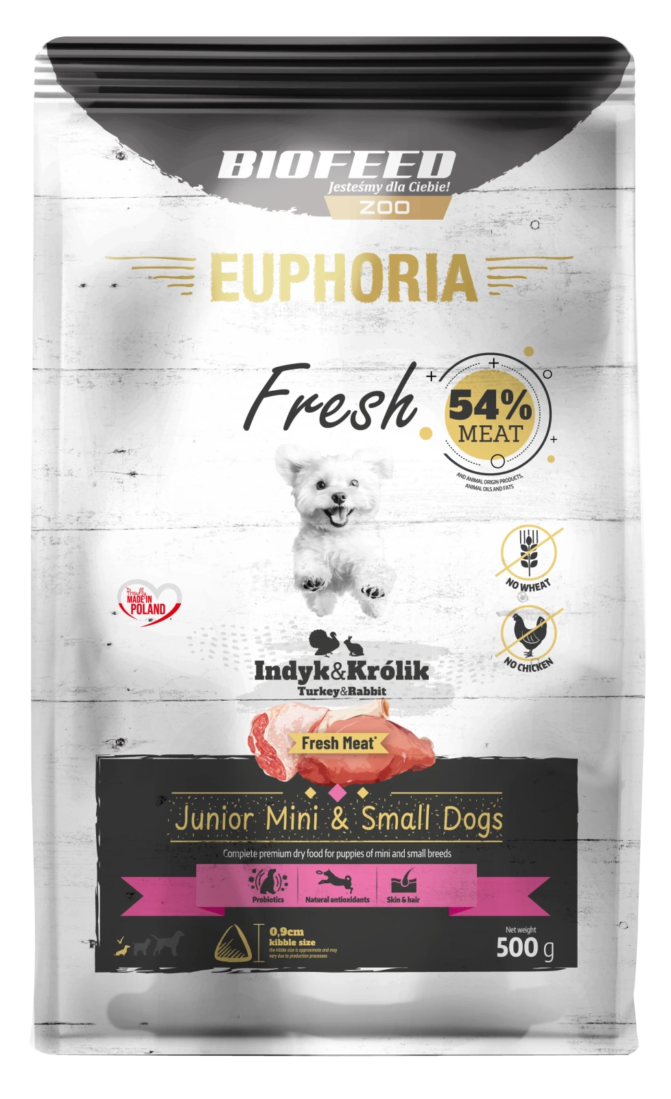 Każdy szczeniak potrzebuje zdrowego, smacznego i łatwostrawnego pożywienia, które wspiera jego intensywny rozwój. Ta karma Super Premium z indykiem i królikiem została opracowana specjalnie dla szczeniąt ras miniaturowych i małych – z myślą o ich delikatnych żołądkach, rosnących mięśniach i nieograniczonej energii. Zawiera świeże mięso, probiotyki, kompleks wspierający stawy oraz kwasy tłuszczowe Omega-3 i Omega-6 dla zdrowia, odporności i pięknej sierści.