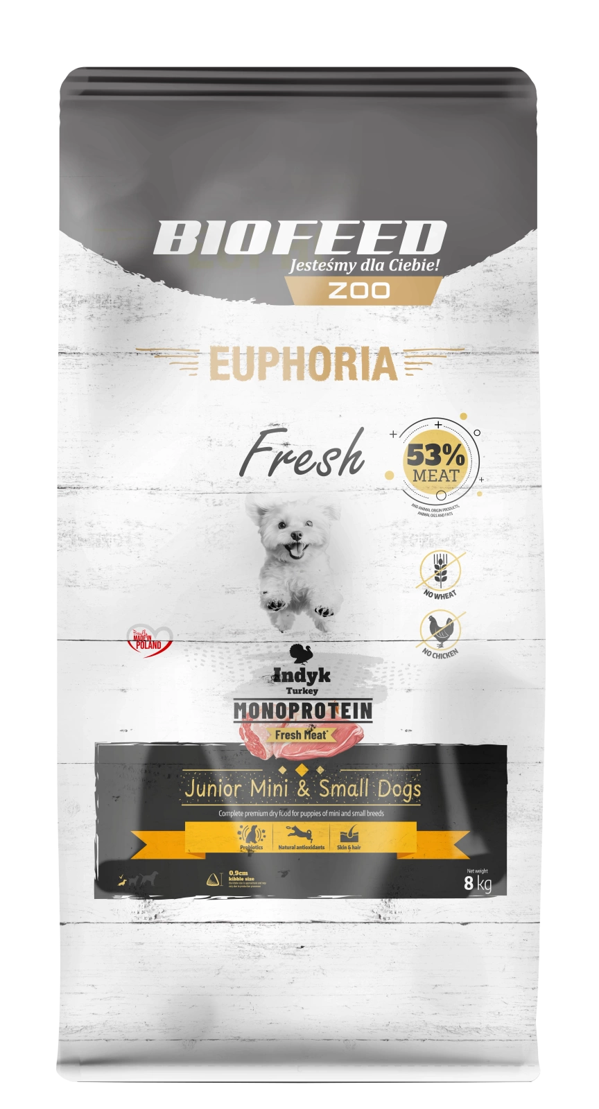 Euphoria Fresh Meat karma sucha dla szczeniąt Junior MONO Indyk XS/S 8kg