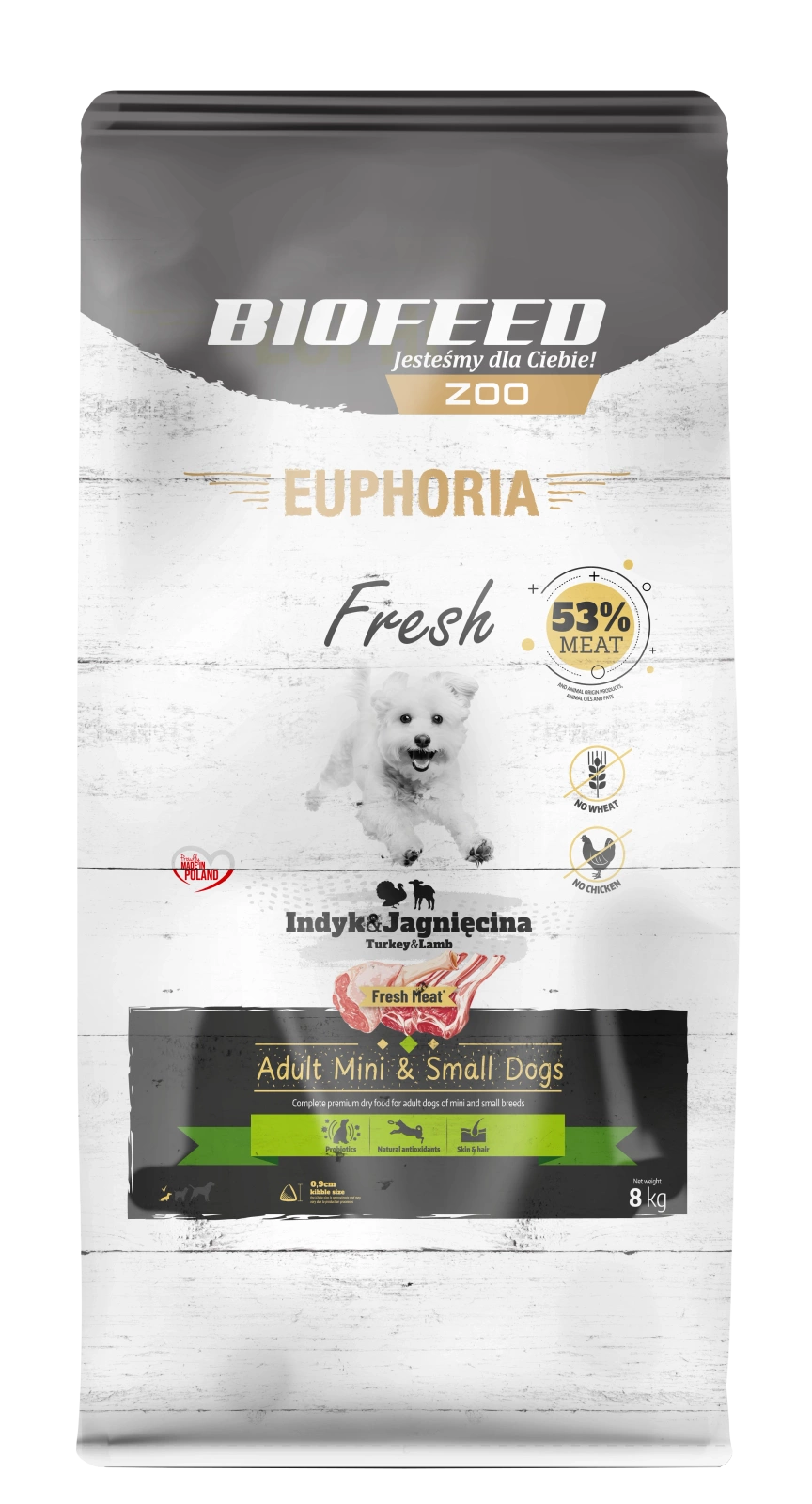 Euphoria Fresh Meat karma sucha dla psów dorosłych Indyk z Jagnięciną XS/S 8kg
