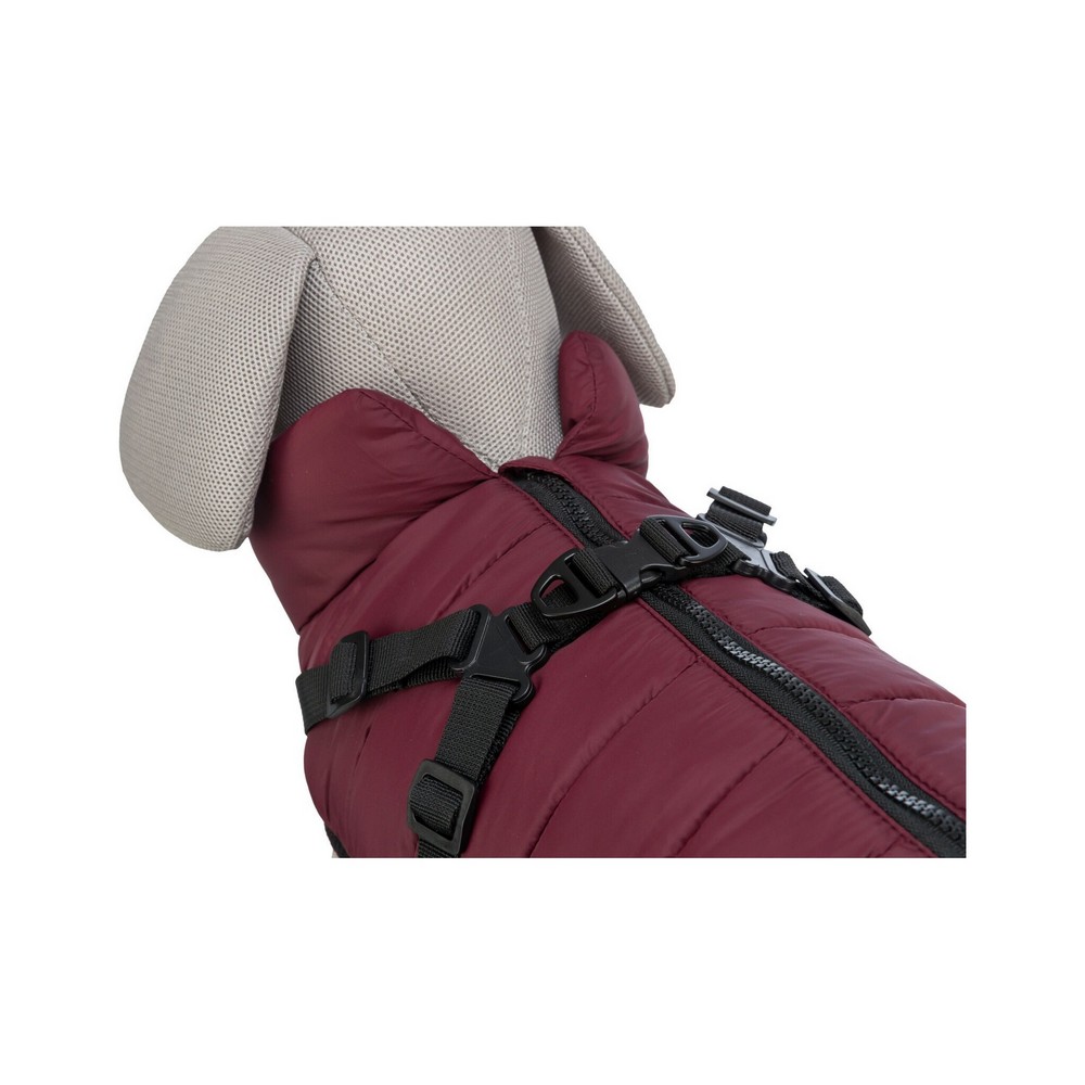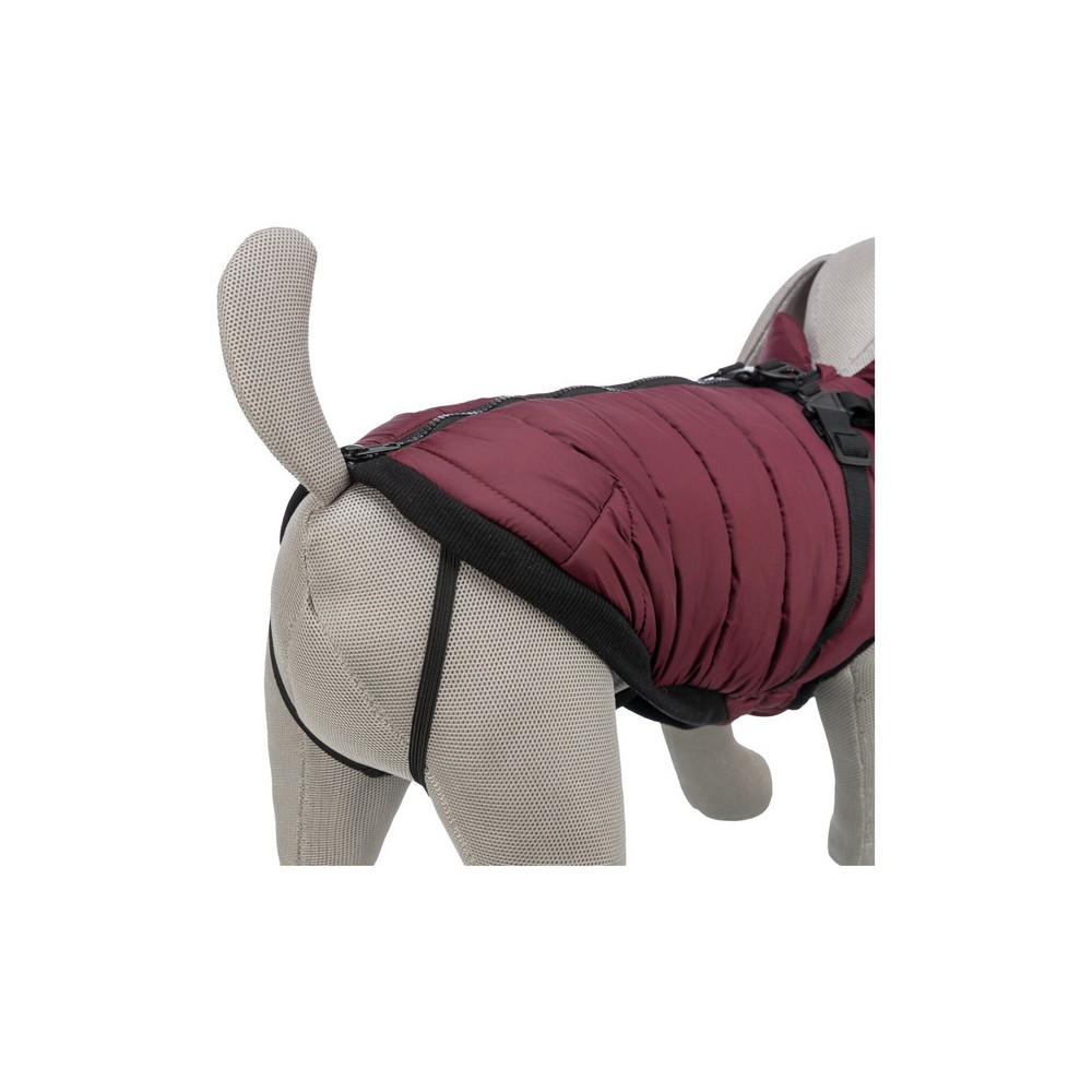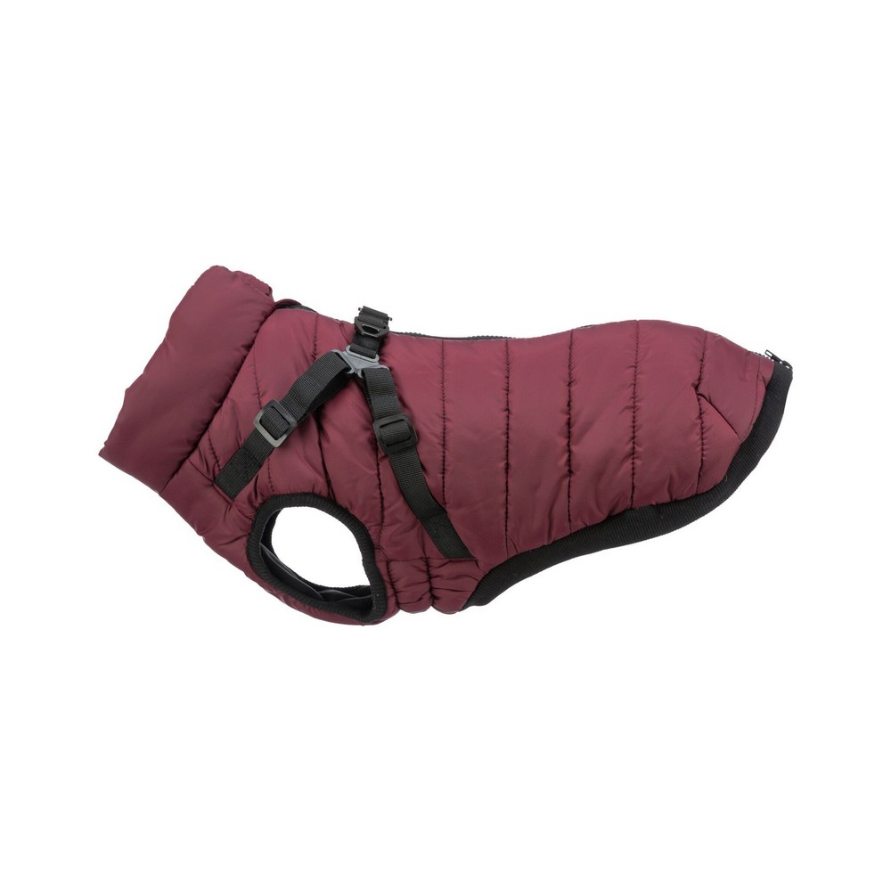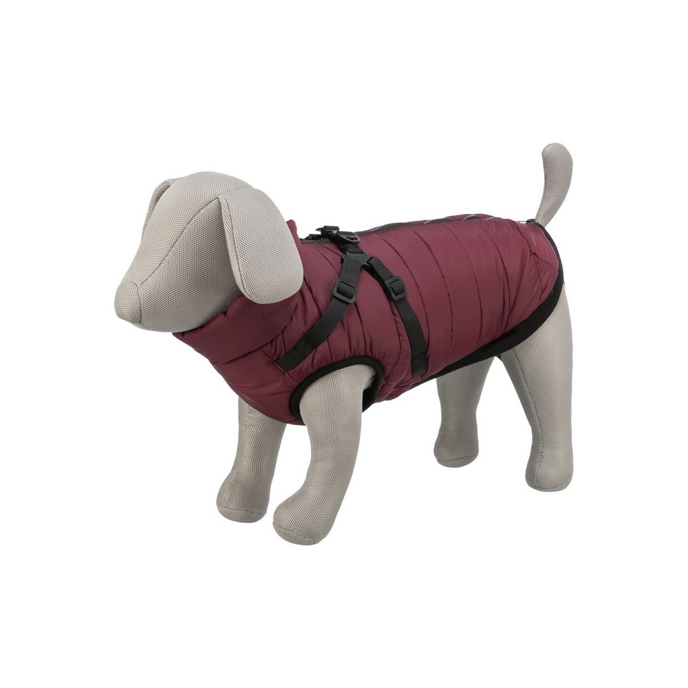 Płaszczyk Pirou w kolorze sangria to połączenie praktyczności z estetyką. Gdy na zewnątrz panuje chłód, wyposażysz psa w komfortowe i wygodne ubranie: płaszcz, który ogrzewa i wygląda elegancko. Dzięki wbudowanym szelkom nie musisz się martwić o dodatkowe elementy — wszystko masz w jednym akcesorium.