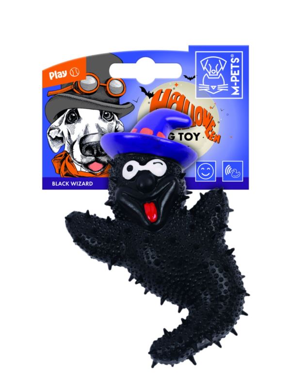 Psikus czy czary? 🎃 Piszczący czarodziej Black Wizard to magiczna zabawka z lateksu, która oczaruje Twojego psa i wprowadzi strrrasznie dobry nastrój na Halloween!