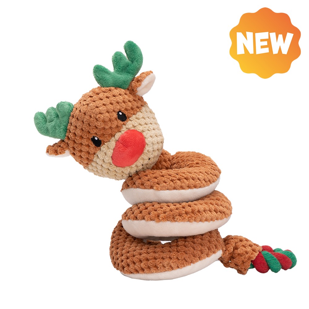 Rozkosznie miękka zabawka z wieloma piszczałkami – idealna na święta, aby sprawić Twojemu psu radość i mnóstwo wesołej aktywności.