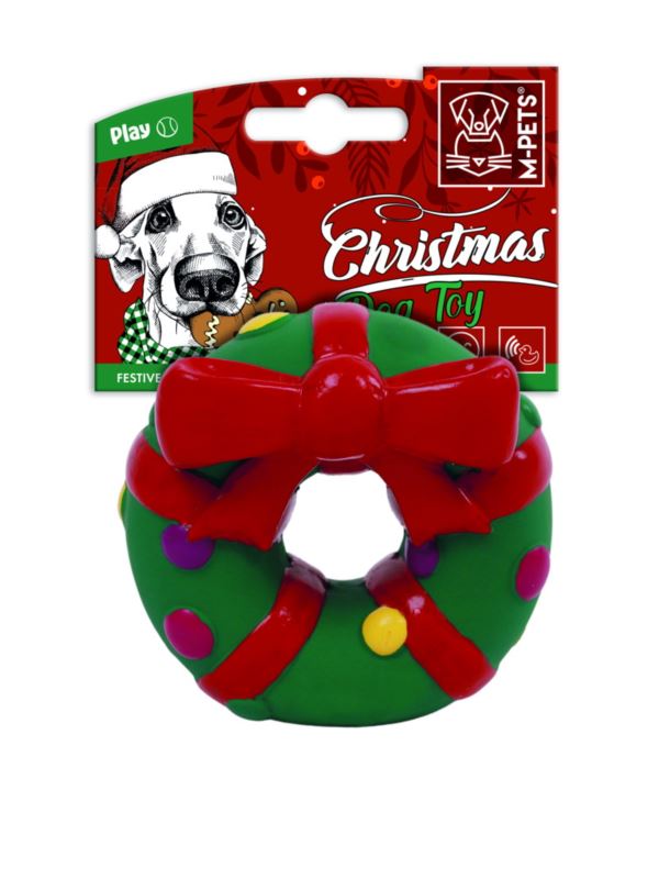 Świąteczna zabawka dla psa marki M-PETS – lateksowa, piszcząca i w kształcie wiązanki świątecznej. 🐾