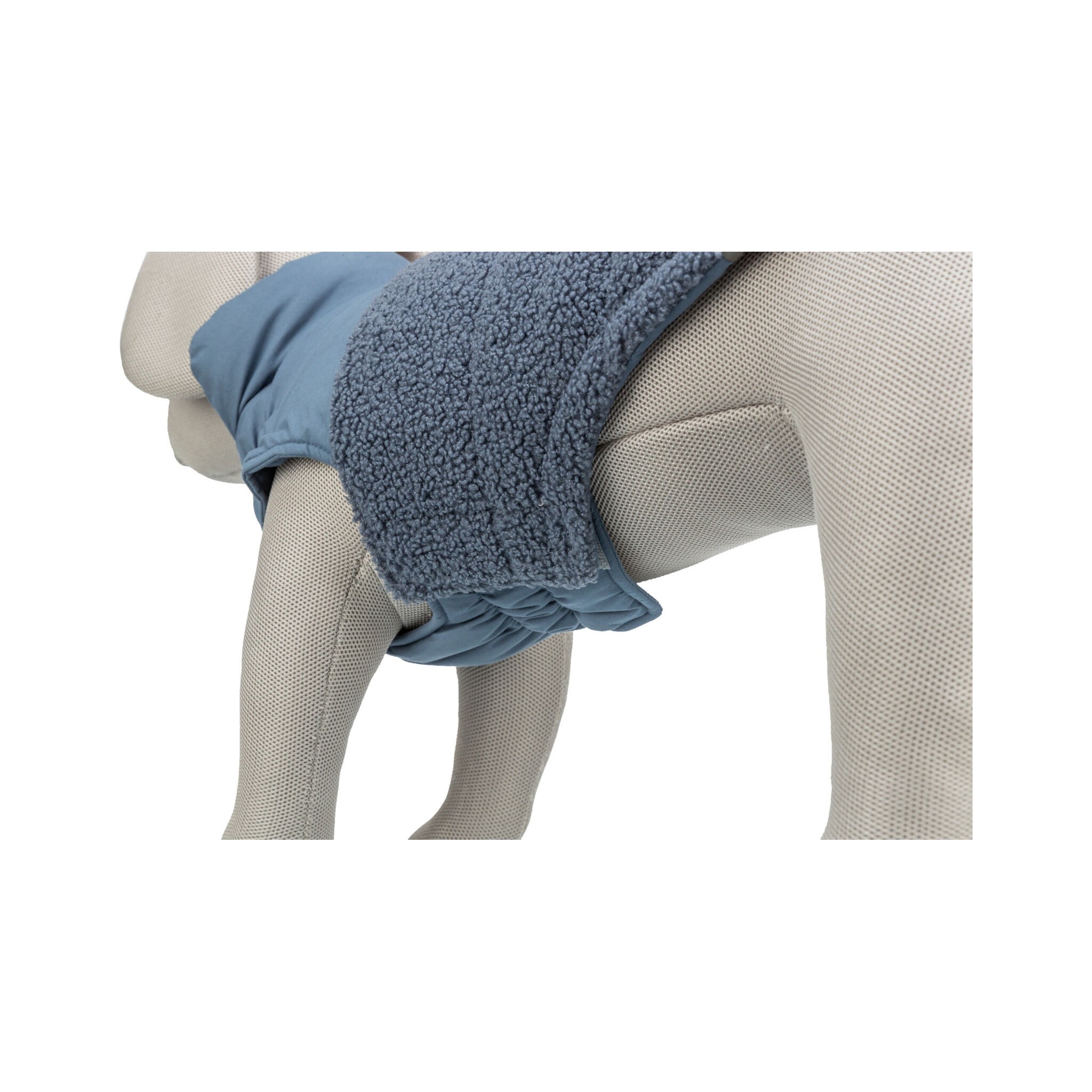 Ten elegancki płaszczyk to doskonały wybór na chłodne dni — ciepła wyściółka otula psa i chroni go przed zimnem, a ozdobne kieszenie nadają całości wyjątkowego charakteru. Regulowany elastyczny śliniak zapewnia idealne dopasowanie, a rzepy na klatce piersiowej i brzuchu ułatwiają szybkie zakładanie i ściąganie płaszcza.