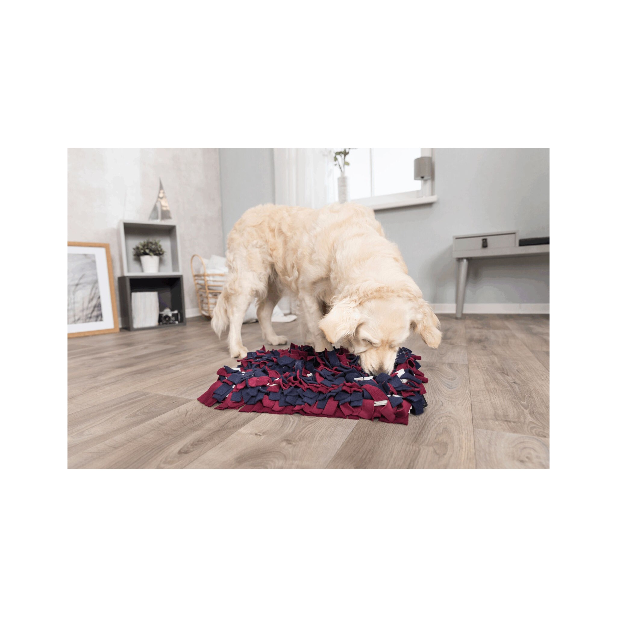Psy kochają pracę nosem — to dla nich naturalna potrzeba i źródło ogromnej satysfakcji. Sniffing Carpet pozwala im realizować tę potrzebę w bezpiecznej przestrzeni domu. Zróżnicowane frędzle oraz możliwość ukrycia przysmaków sprawiają, że każdy posiłek czy trening zamieniają się w emocjonującą przygodę, która poprawia koncentrację i pozwala spalić nadmiar energii.