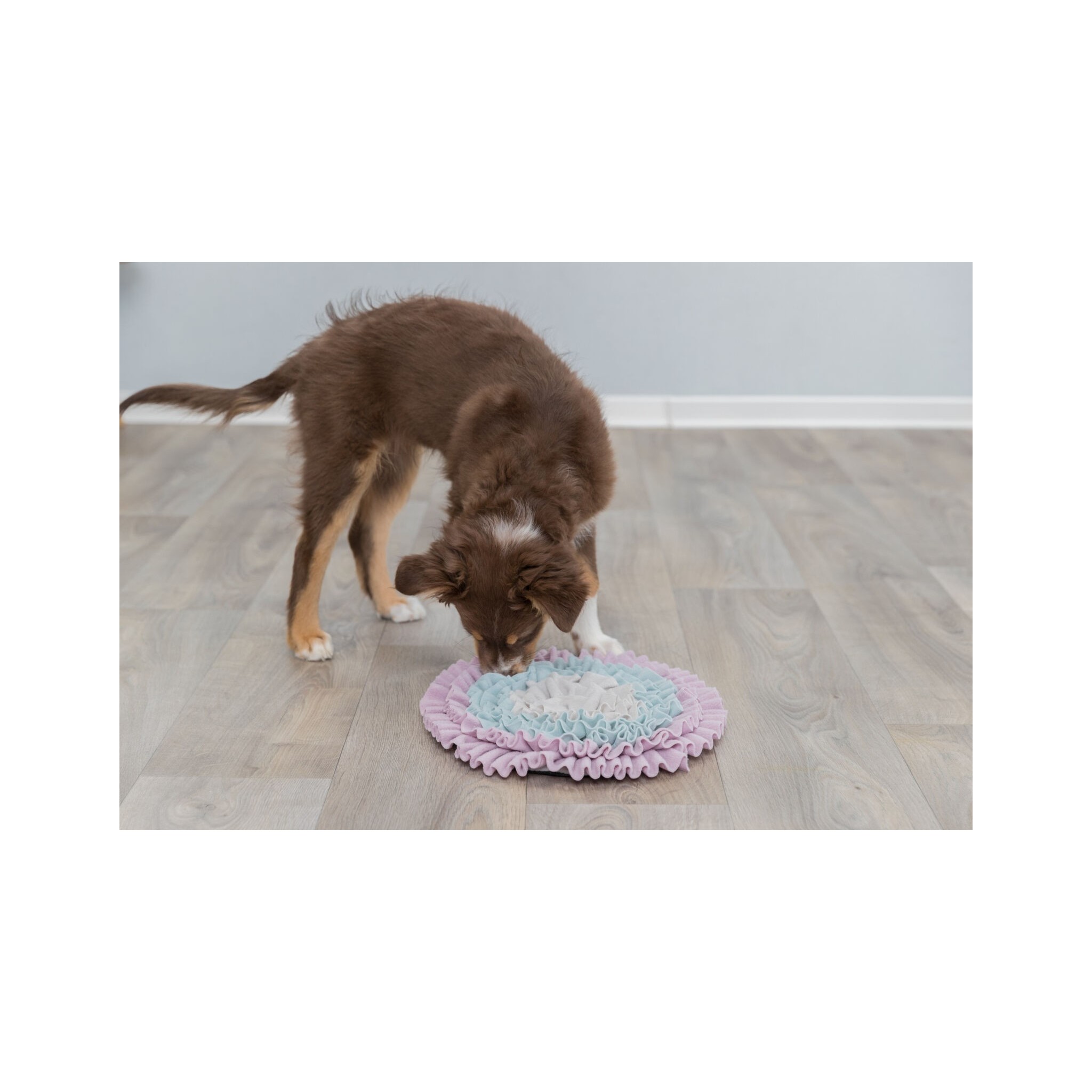 Każde zwierzę ma wrodzoną potrzebę pracy nosem — to dla nich nie tylko zabawa, ale także sposób na wyciszenie i pobudzenie umysłu. Dywanik węchowy Junior daje możliwość ukrycia karmy lub przysmaków, dzięki czemu codzienny posiłek staje się ekscytującym wyzwaniem. To idealna aktywność, która pomaga psu lub kotu ćwiczyć cierpliwość, koncentrację i spowalnia tempo jedzenia, sprzyjając zdrowiu układu pokarmowego.