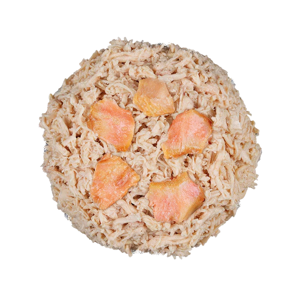 Łapsie for Cat Kurczak w bulionie z łososiem to idealne zestawienie delikatnego drobiu z aromatycznym łososiem. 46% piersi z kurczaka dostarcza lekkostrawnego, wysokiej jakości białka, a 4% łososia wzbogaca posiłek o smak i cenne składniki odżywcze.