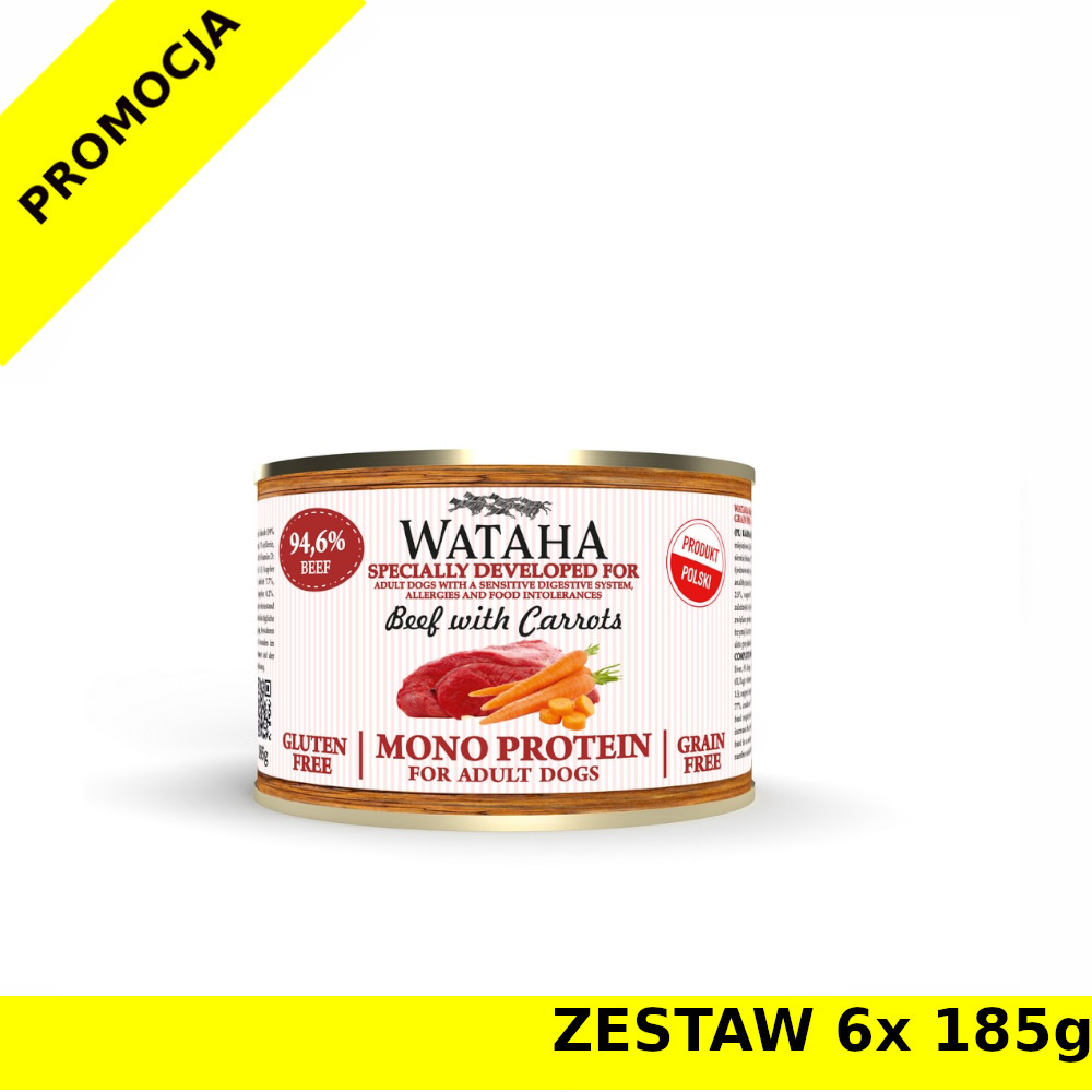 Wataha Mono Protein Adult Dog – Wołowina z Marchewką ZESTAW 6x 185 g