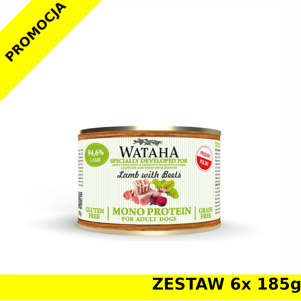 Wataha Mono Protein Adult Dog – Jagnięcina z Burakami ZESTAW 6x 185 g