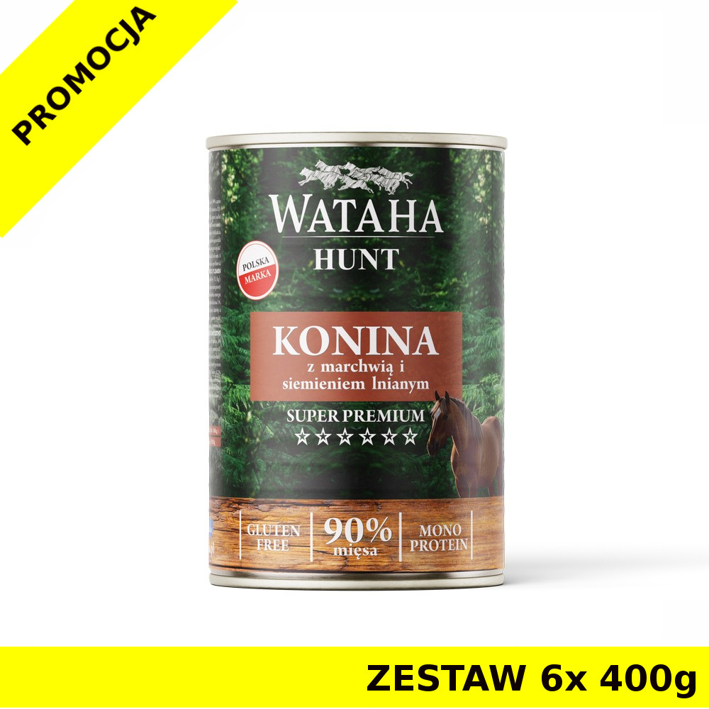 Wataha karma mokra Adult HUNT MONO Konina z Marchwią i Siemieniem Lnianym ZESTAW 6x 400g