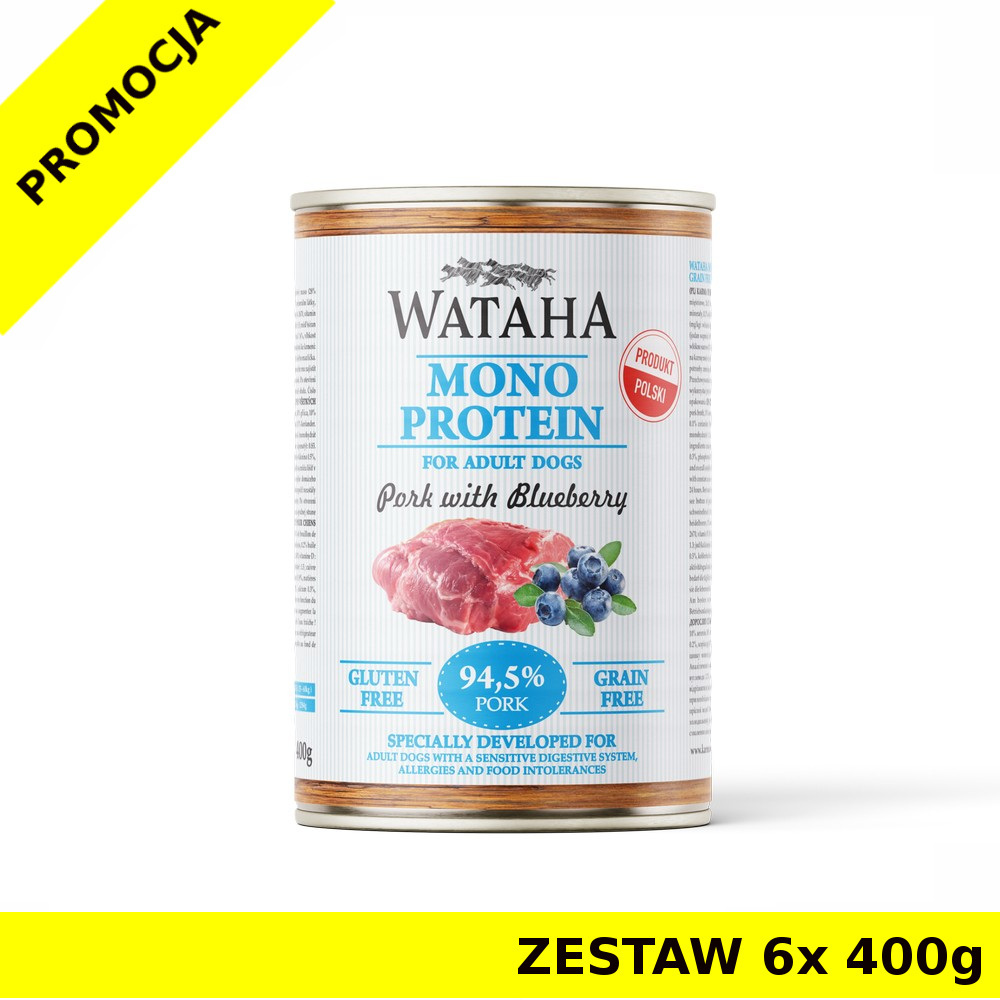 Wataha Mono Protein Adult Dog – Wieprzowina z Borówką ZESTAW 6x 400 g