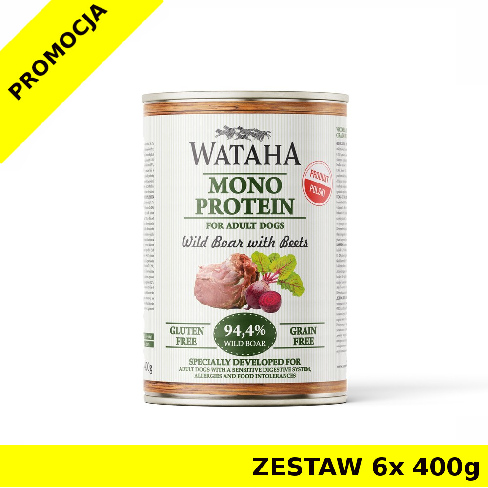 Wataha Mono Protein Adult Dog – Dzik z Burakami ZESTAW 6x 400 g