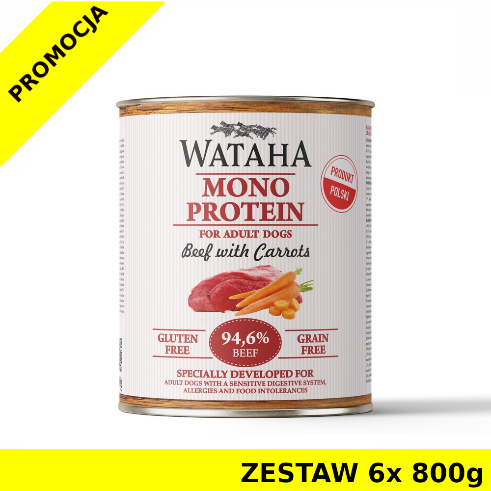 Wataha Mono Protein Adult Dog – Wołowina z Marchewką ZESTAW 6x 800 g