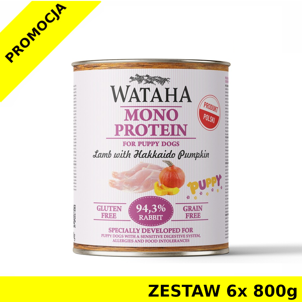 Wataha karma mokra dla szczeniąt MONO Królik z Dynią Hokkaido ZESTAW 6x 800g