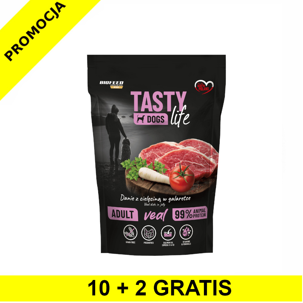 Mokra karma z cielęciną w galaretce to pyszne, pełnowartościowe danie stworzone z myślą o dorosłych psach wszystkich ras. Łączy w sobie lekkostrawne białko, witaminy i minerały, wspierając zdrowie, odporność i siłę Twojego pupila. Dzięki naturalnym dodatkom warzywnym, takim jak pomidor i pietruszka, wspiera trawienie i oczyszcza organizm z toksyn.