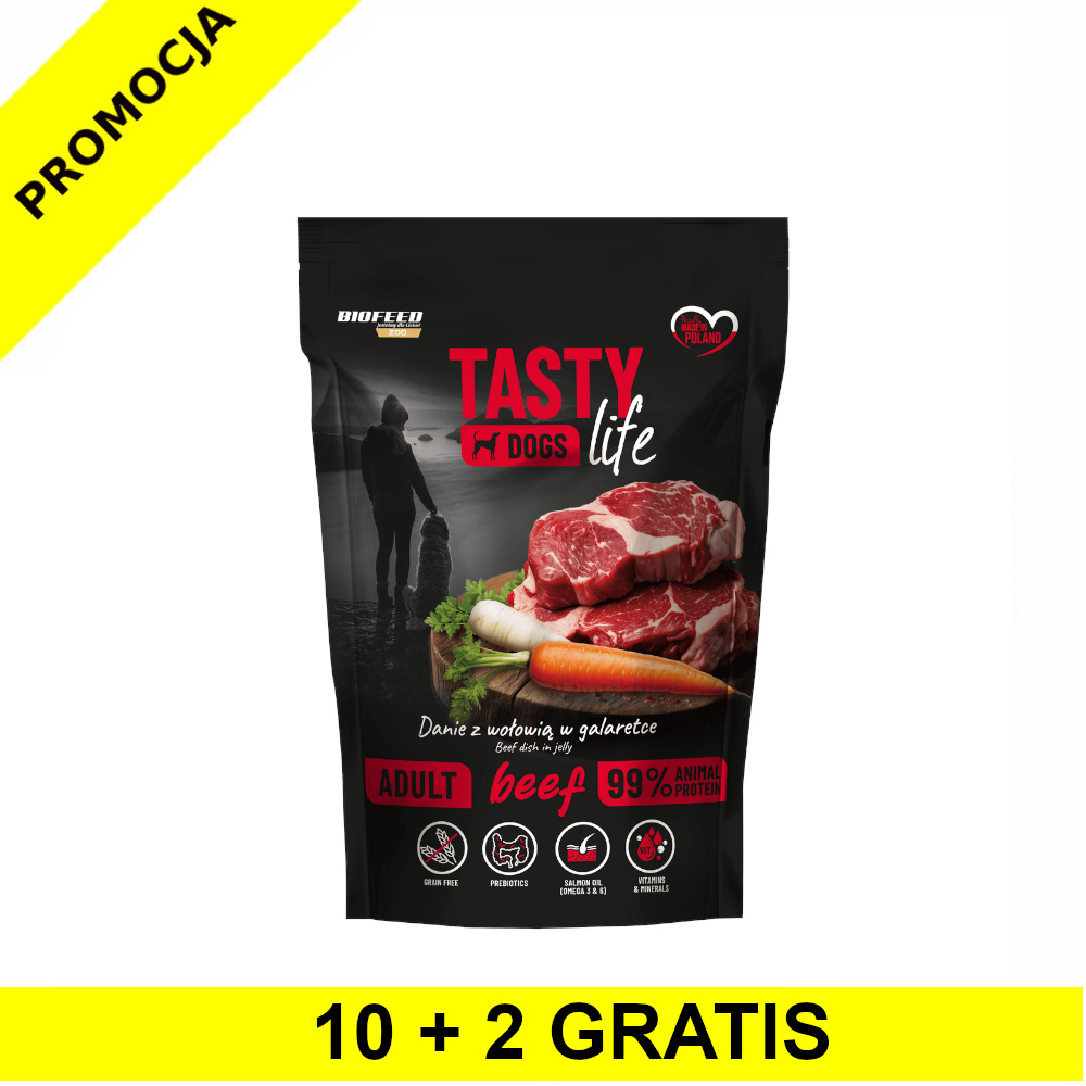 Dorosły pies potrzebuje nie tylko energii, ale i składników, które wspierają jego odporność, mięśnie i kondycję. Mokra karma z wołowiną w galaretce to połączenie intensywnego smaku i naturalnych wartości odżywczych – idealna dla psów wybrednych, aktywnych i wrażliwych. Każdy kęs to wyraz troski o zdrowie i radość Twojego pupila.