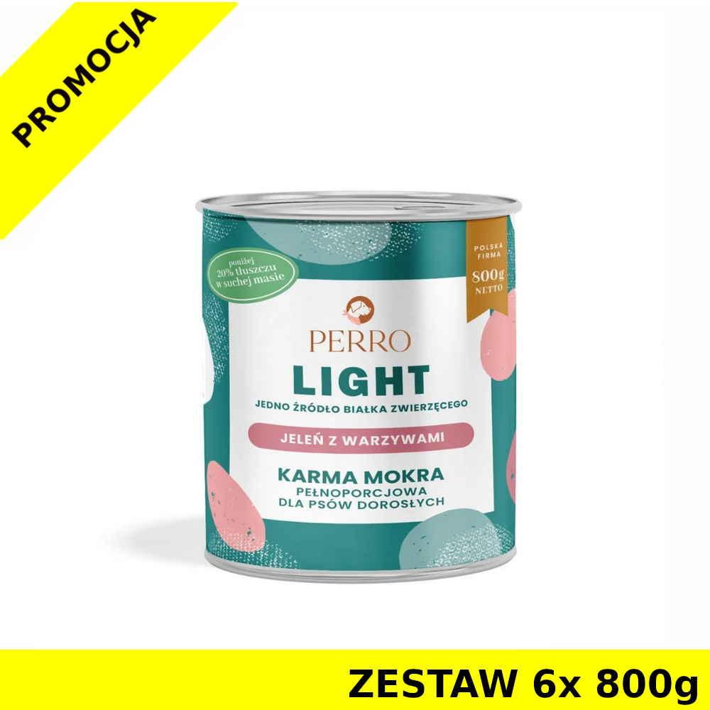 6x 800g - Jeleń z Warzywami - Perro Light - karma mokra monobiałkowa dla psa dorosłego - zestaw