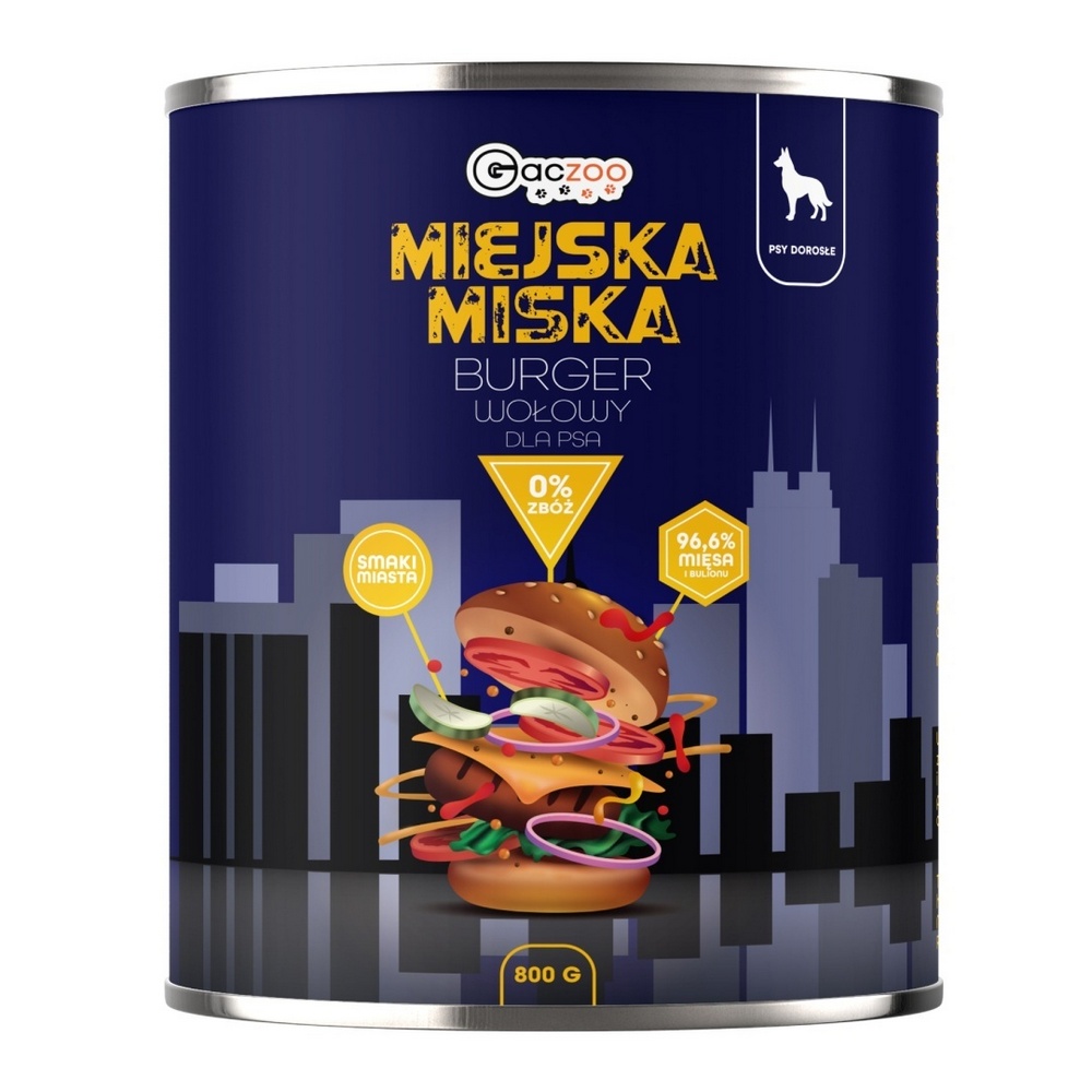 Gaczoo Miejska Miska – Burger Wołowy bezzbożowa karma mokra dla psa 800 g 🐾
