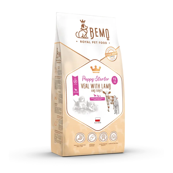 BEMO Karma sucha dla szczeniąt i suk w ciąży Puppy Starter Cielęcina, Indyk i Jagnięcina 1kg (waga)