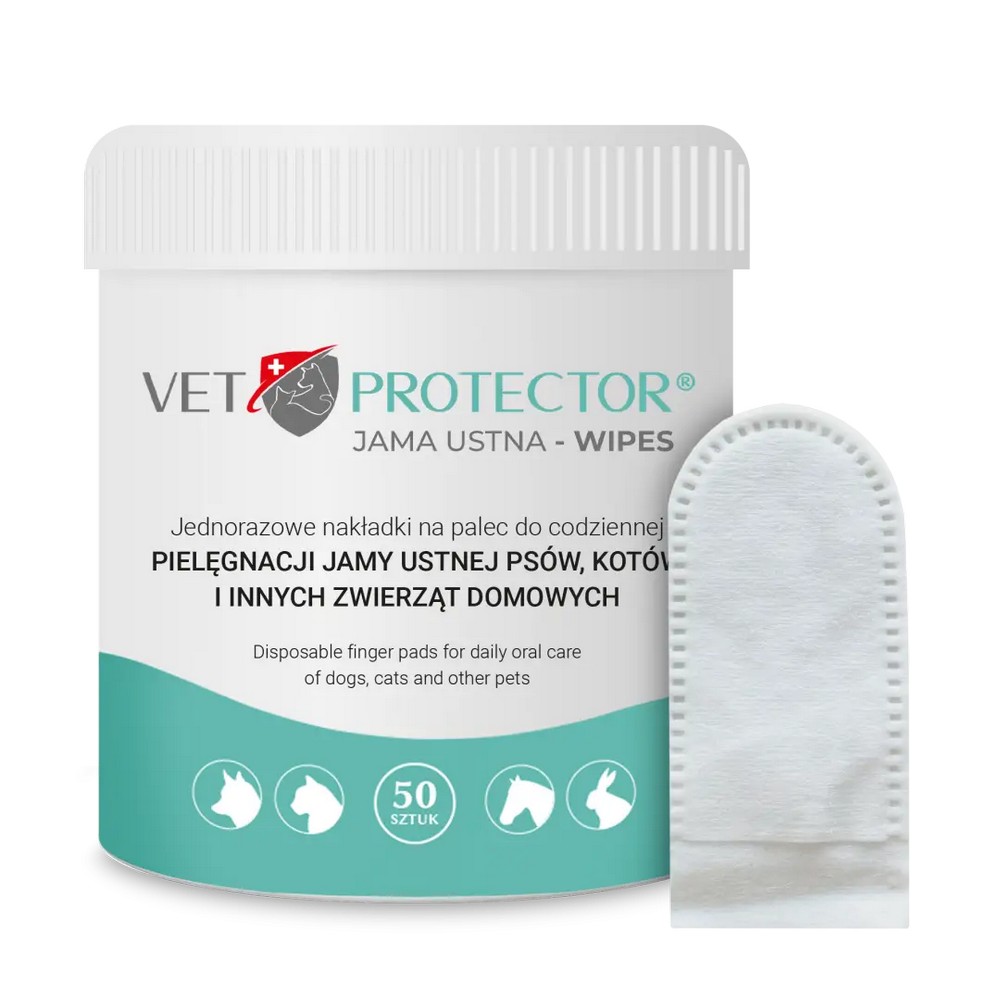 Nie każde zwierzę toleruje klasyczne szczotkowanie – a higiena jamy ustnej nadal ma znaczenie każdego dnia. VET PROTECTOR® JAMA USTNA – WIPES to jednorazowe nakładki na palec, które pozwalają delikatnie, a jednocześnie skutecznie usuwać osad i płytkę nazębną, dbając o świeży oddech i komfort pupila.