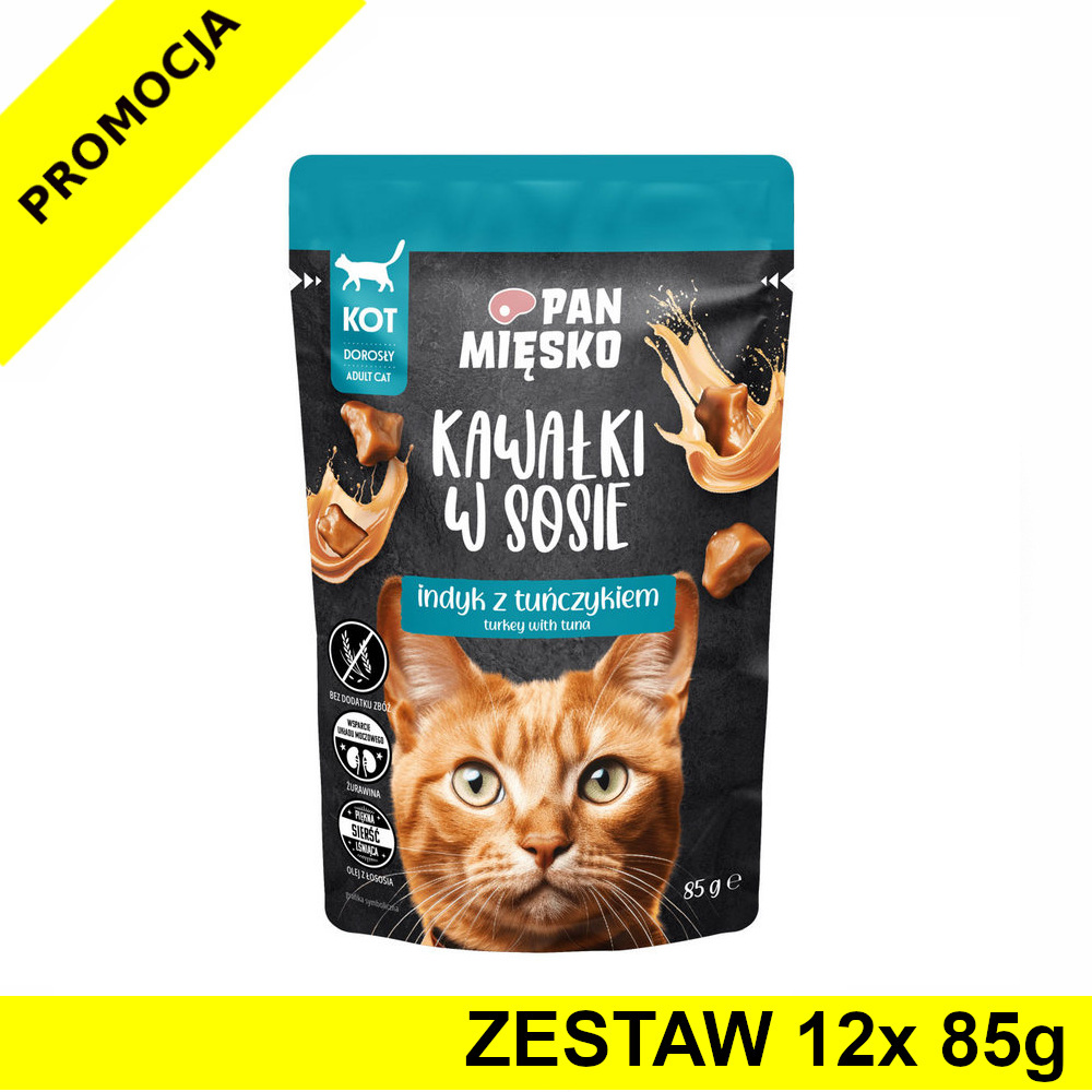 Soczyste kawałki zatopione w aromatycznym sosie zadowolą nawet najbardziej wybrednych smakoszy! To odpowiednio zbilansowane i bogate w mięso danie będzie pysznym i pełnowartościowym posiłkiem na co dzień. Receptura została dodatkowo wzbogacona o olej z łososia i suszone drożdże piwne dla pięknej lśniącej sierści, żurawinę dla wsparcia układu moczowego, a także o zdrowe zioła.