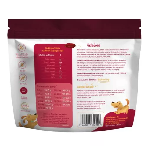 3760 kcal/kg – odpowiednia dla psów aktywnych i średnich ras.
