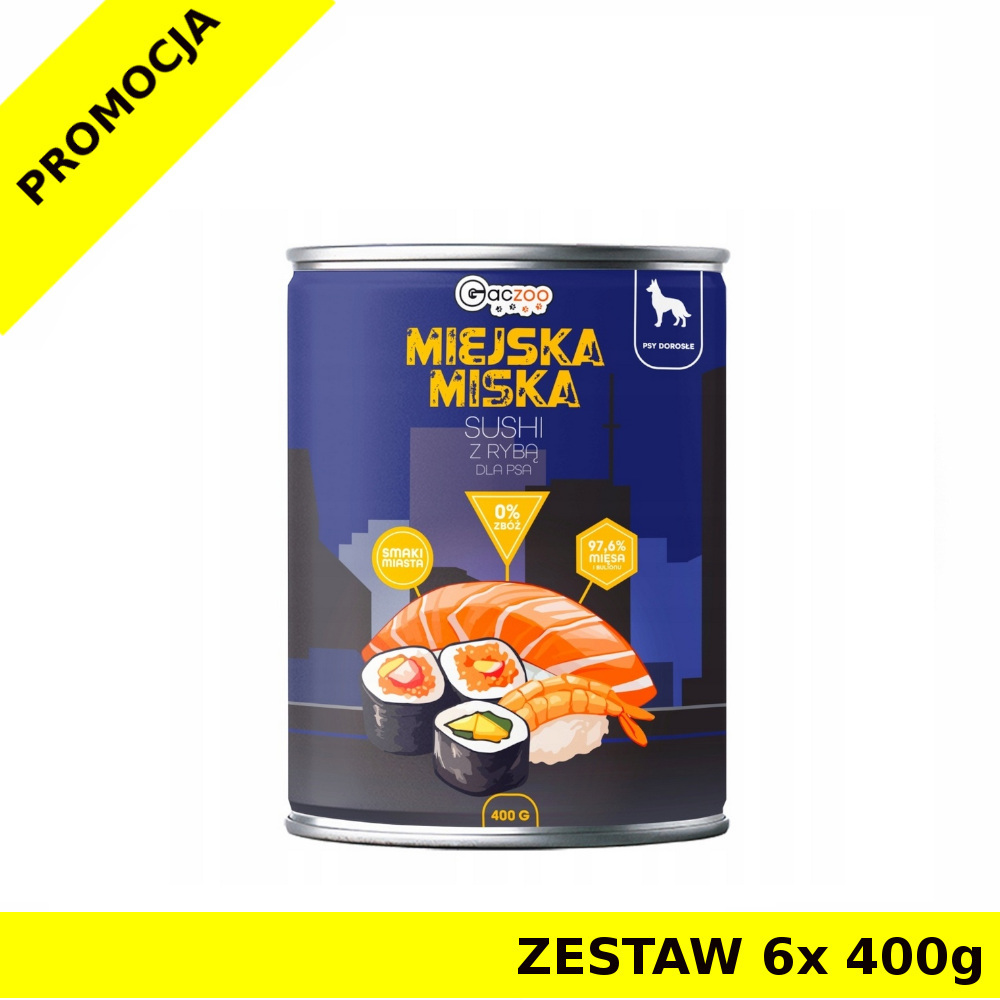 Gaczoo Miejska Miska – Sushi z Rybą bezzbożowa karma mokra dla psa ZESTAW 6x 400 g 🐾