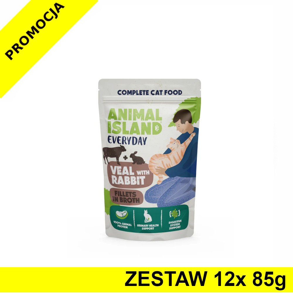 Twój kot zasługuje na posiłek, który łączy naturalny smak z troską o jego zdrowie. Dlatego w saszetkach Animal Island znajdziesz delikatne fileciki z cielęciny i królika zanurzone w aromatycznym rosole wołowym. To lekka, bezzbożowa formuła idealna dla wrażliwych brzuszków, wybrednych kotów i opiekunów, którzy oczekują jakości premium bez kompromisów.