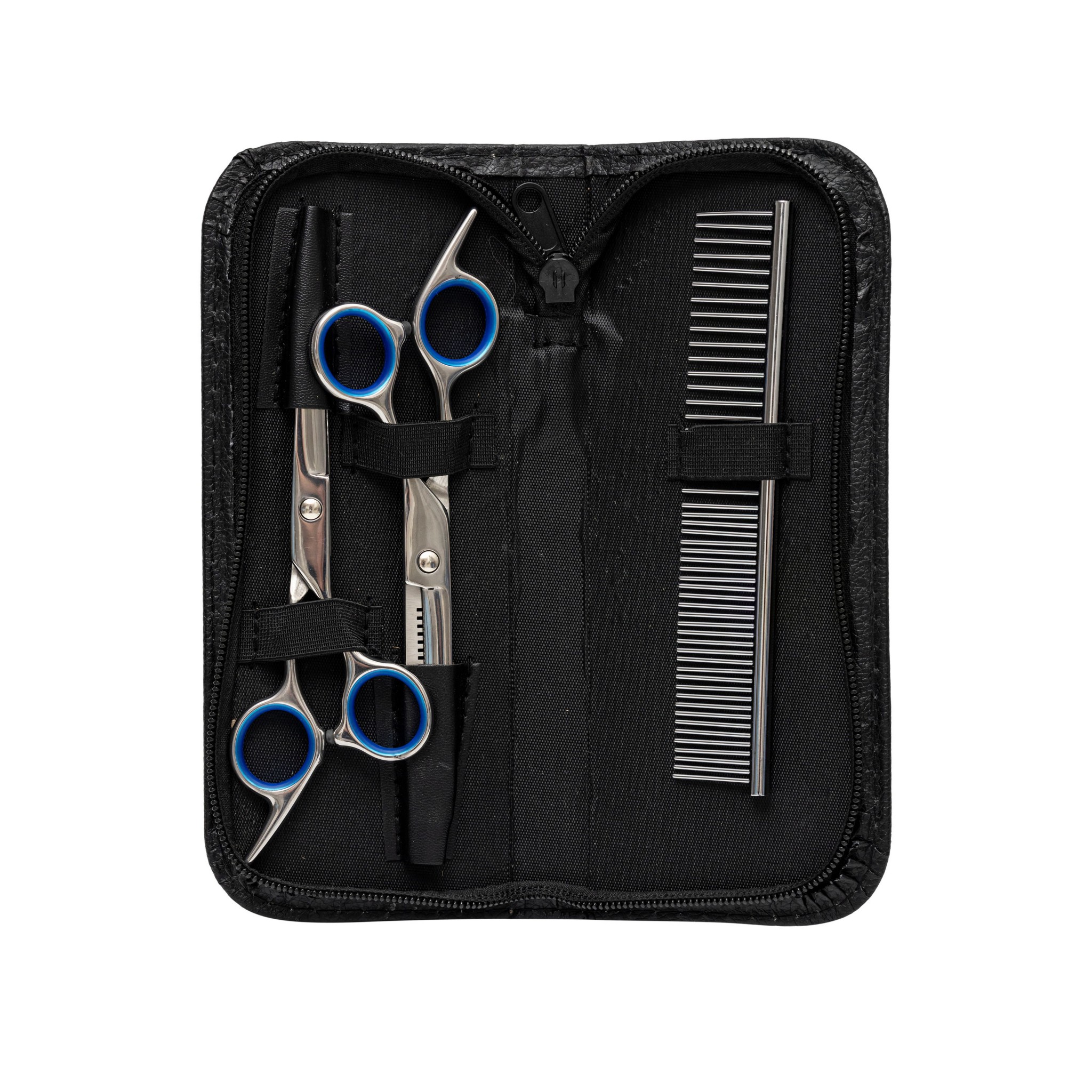 3 narzędzia ze stali nierdzewnej w praktycznym etui – kompleksowe strzyżenie i stylizacja sierści w domu lub salonie.