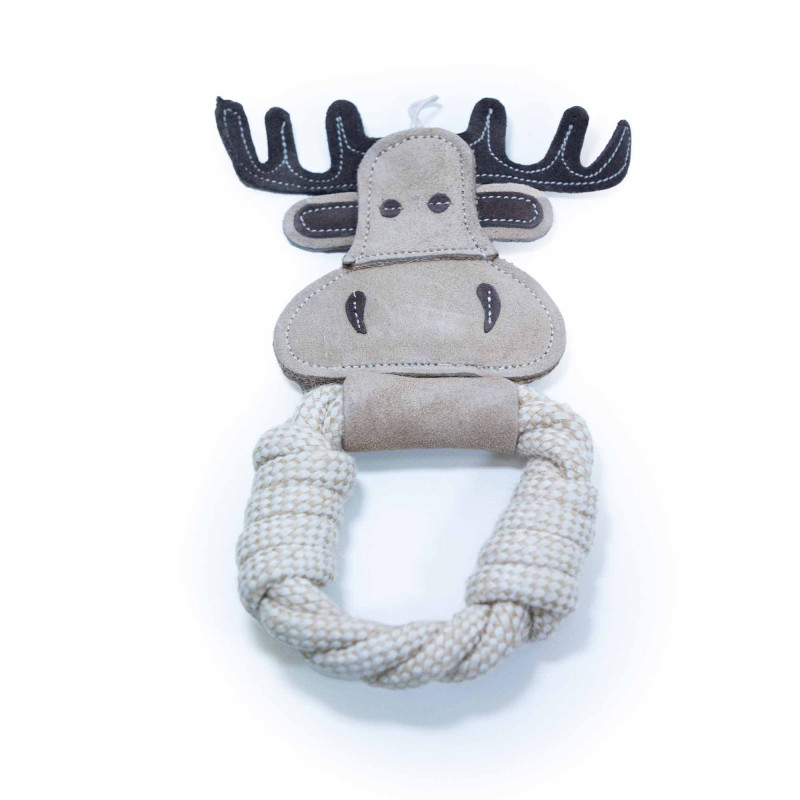 Naturalna struktura materiałów zachęca psa do gryzienia i chwytania, a kształt łosia ułatwia trzymanie zabawki w pyszczku. Dzięki temu pies może bawić się samodzielnie lub wspólnie z opiekunem podczas interaktywnej zabawy.