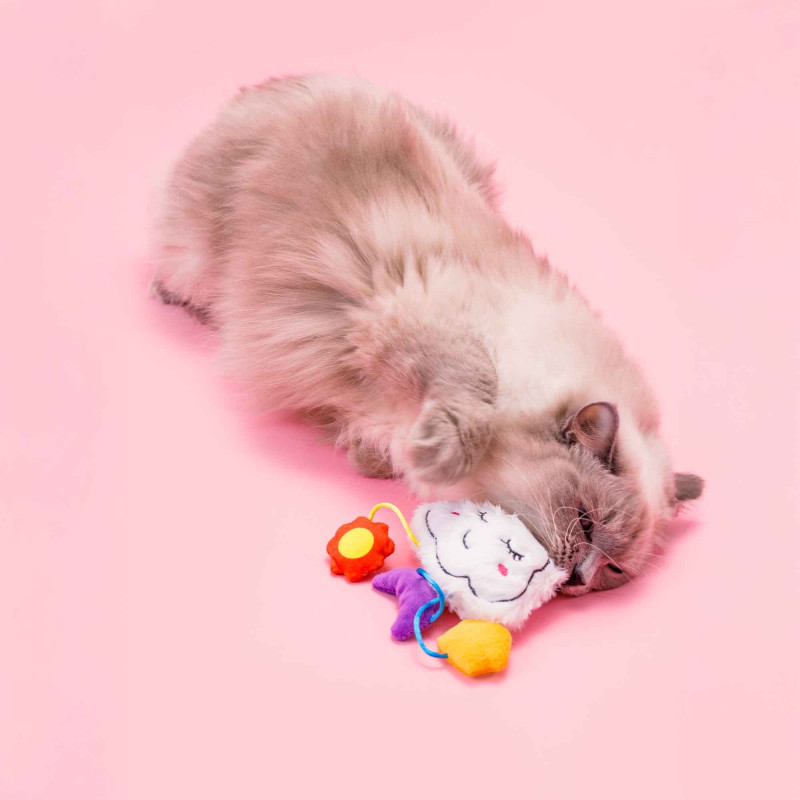 Miękka, urocza i pełna kociej frajdy ☁️ Zabawka w kształcie chmurki zachęca do łapania, tarmoszenia i codziennej aktywnej zabawy.