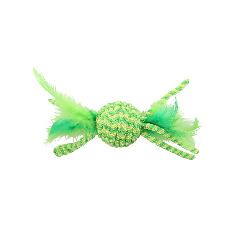 Piłeczka z elastycznego sznurka z piórami i dźwiękiem sprawi, że Twój kot z przyjemnością ruszy do zabawy 🐱