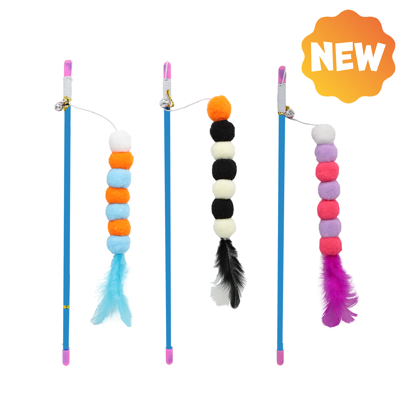 Wędka dla kota 3w1 – sznurek, gąsienica i piórko 🐱