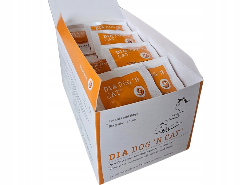 Problemy jelitowe potrafią pojawić się nagle i szybko odbić się na samopoczuciu psa lub kota. DIA DOG’N’CAT został opracowany z myślą o zwierzętach, które potrzebują delikatnego, ale konkretnego wsparcia w czasie biegunki, zaburzeń wchłaniania i osłabienia przewodu pokarmowego. Formuła pomaga osłonić błonę śluzową jelit, wspiera prawidłowe nawodnienie i sprzyja odbudowie równowagi trawiennej.