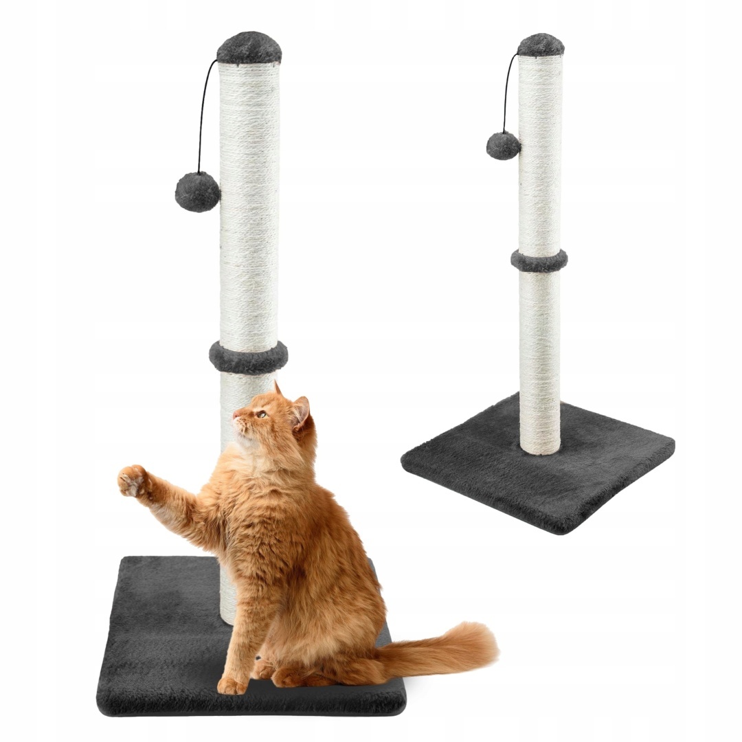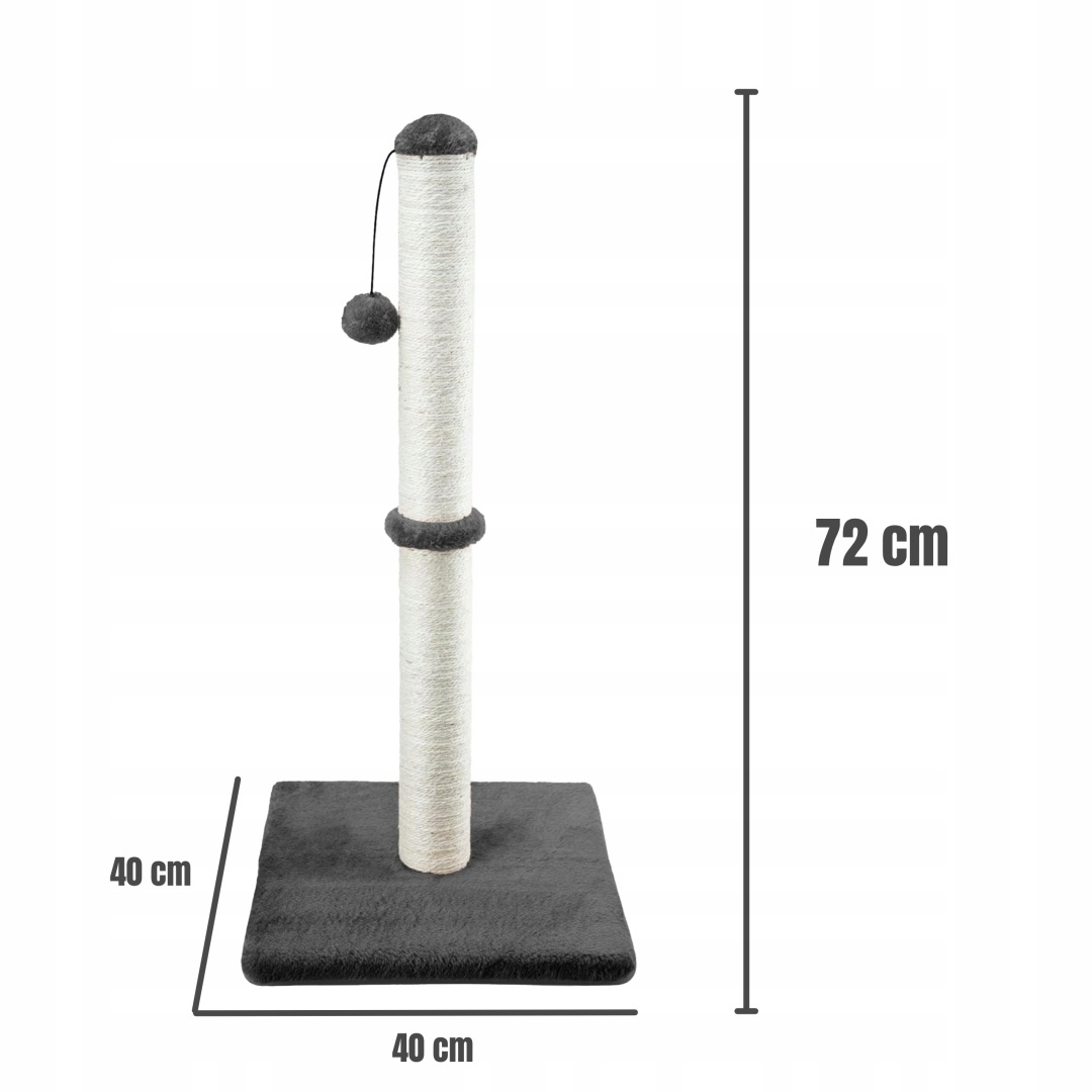 Gaczoo Drapak dla kota słupek z piłeczką – ciemny szary 40 × 40 × 72 cm