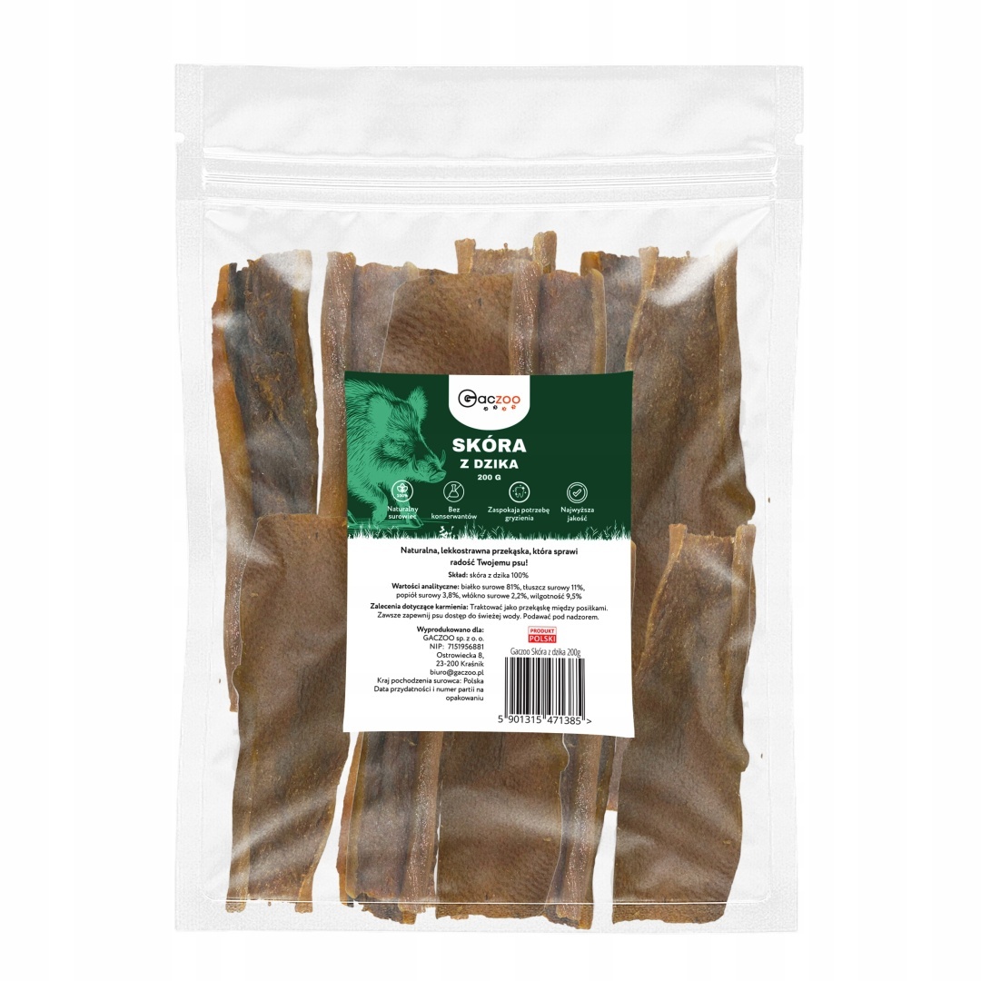 GACZOO Skóra z dzika bez włosa 200 g – naturalny gryzak dla psa