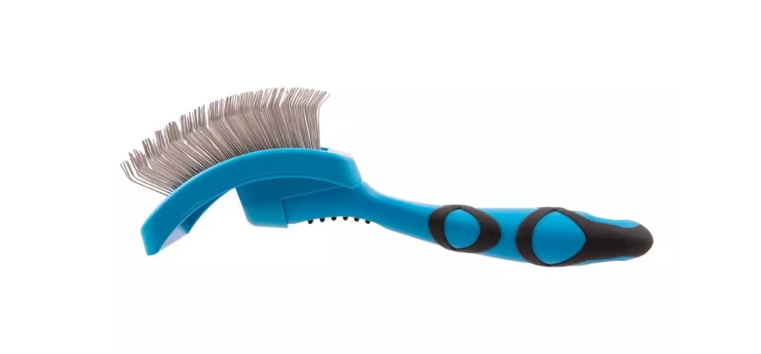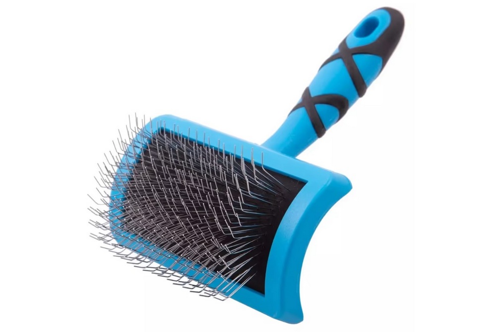 Groom Professional Slicker Firm Medium to szczotka zaprojektowana do pracy z gęstą i wymagającą sierścią. Dzięki średnio-twardej konstrukcji oraz bardzo długim pinom skutecznie dociera do głębokich warstw okrywy włosowej, usuwając martwy podszerstek i kołtuny. Jednocześnie pomaga unieść włos, nadając sierści objętość i estetyczny wygląd.