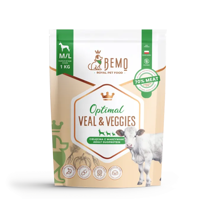BEMO Karma sucha dla psów ras średnich i dużych Optimal Cielęcina z Warzywami M/L 1kg