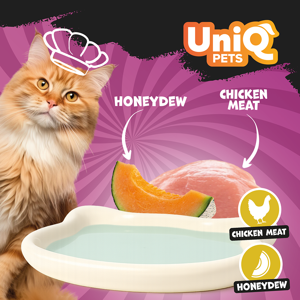 Twój kot zasługuje na coś więcej niż zwykły posiłek. Delikatny, kremowy shake UNIQ PETS to wyjątkowe połączenie soczystego kurczaka i orzeźwiającego melona, które nie tylko rozpieszcza kubki smakowe, ale też wspiera nawodnienie i codzienną kondycję. Idealny zarówno jako lekki posiłek, jak i smakowita przekąska – niezależnie od pory roku.