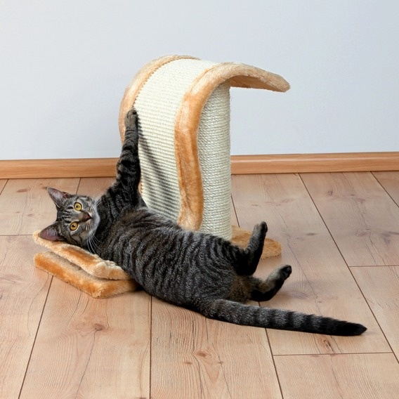 Sizalowy drapak z pluszowym, jasnobrązowym obiciem.