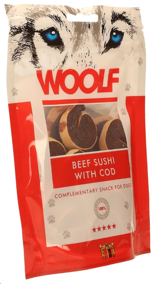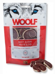 Woolf Snack Sushi z wołowiną i dorszem dla psów i kotów wszystkich ras.